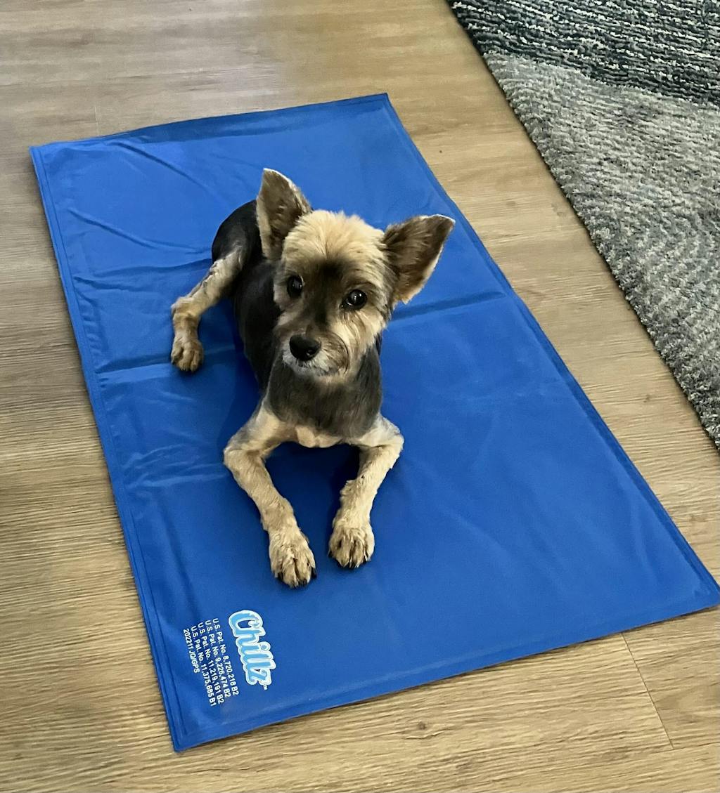 The Chillz Gel Pad offers a non toxic, pressure-activated cooling solution for your pet. Featuring our patented liquid-based cooling gel formula, this mat offers similar benefits as our premium Cool Pet Pad for less. The Chillz pet cooling mat provides your dog or cat with relief from the heat as well as helping relieve any body aches or pains they may be experiencing. Best of all, the Chillz cooling mat for dogs and cats doesn’t require any electricity or refrigeration to keep your pets cool. It’s ready for use whenever your pet needs it, whether you’ve just come inside after a walk on a hot day or to help your four-legged friend relax for an afternoon nap. With the Chillz cooling pad, your furry friends can stay comfy and cool inside no matter how hot it gets outside.